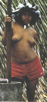 Photo d'une aborigène de la tribu des Urueu-Wau-Wau marque une pause pendant l'une des fastidieuses tâches de préparation de la nourriture.