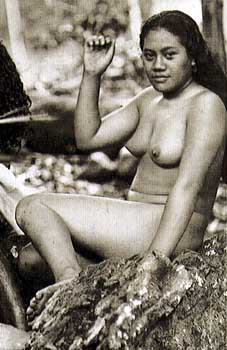 When Editor Gilbert H. Grosvenor published photograhs of unclad Philippine women in 1903, he said the pictures were "a true reflection of the customs of times in those islands." So was this photo of Marquesan chief, in cape of human hair taken from enemy dead, and his companions. But it was not selected for our October 1919 article "A Vanishing Poeple of South Seas : The Tragic Fate of the Marquesan Cannibals, Noted for their Warlike Courage and Physical Beauty." Botanist Joseph Banks missed visiting the Marquesas Islands on Captain Cook's second voyage in 1772, having quit in a dispute over the size of his quarters.