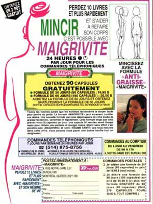 Publicités paruent dans sa revue "KILO MAIGRIR", 1993-1994-1995