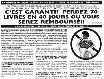 Annonce retrouvée dans le journal Échos Vedettes, du 18 au 24 avril 1998, p.43