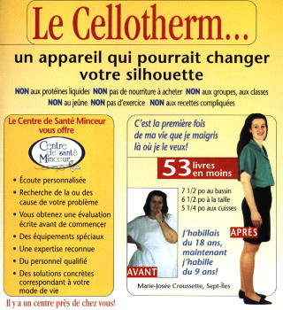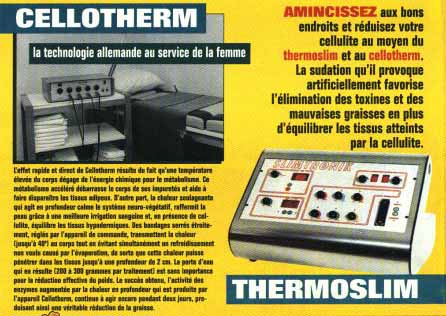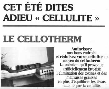 Le Cellotherme : faire accroire à une femme qu'elle va maigrir en étant sous une couverture chauffante, il faut le faire. Annonce 1 trouvée dans la revue Femme d'aujourd'hui en p.15