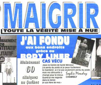 Le Body Liner : qu'est-ce que cela mange en hiver ? Annonce trouvée dans le journal Samedi Express de Granby du 25 avril 1998