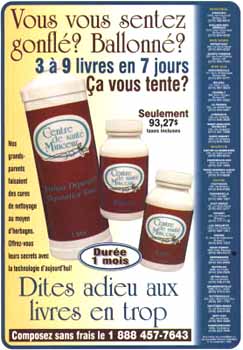 Comment un tonique dépuratif, une aide à la digestion et un laxatif peuveut-ils faire brûler plus de calories ? Annonce trouvée dans la revue Le Lundi dans un numéro de fin des années 1990