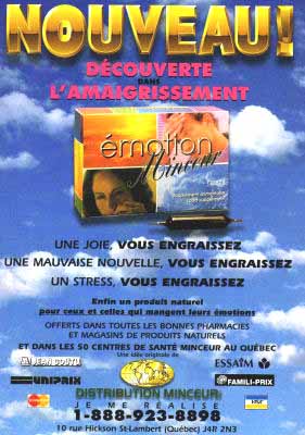 C'est quoi le rapport entre un supplément alimentaire et les émotions d'une personne ? Annonce trouvée dans la revue Le Lundi dans un numéro de fin des années 1990